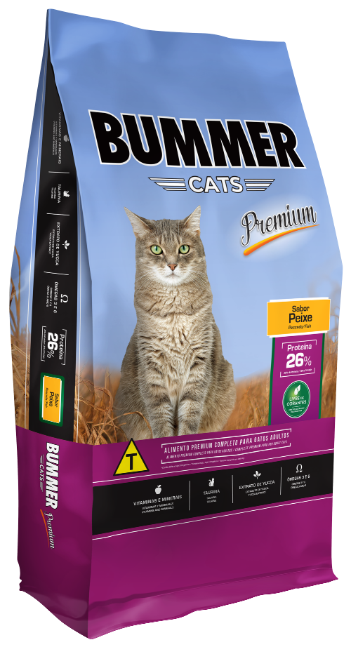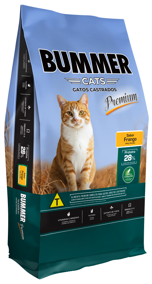 Bummer® Cats gatos castrados é um alimento completo de alta qualidade para gatos adultos castrados de todas as raças, elaborado com ingredientes selecionados, cuidadosamente balanceados e processados de forma a obter a combinação ideal entre nutrição e sabor.